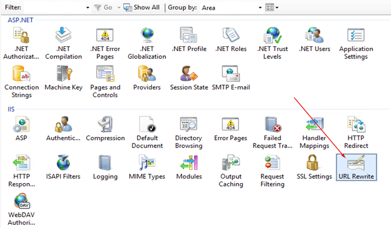 Make sure you've got the URL rewrite module installed in IIS. If you aren't sure if you do or not, you'll find out quickly when you can't find "URL Rewrite" in the steps below. Here are downloads for the 32bit version or the 64bit version.