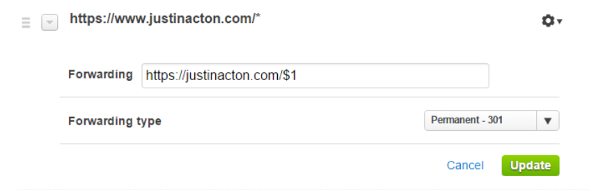 - Now turn on Forwarding and enter https://yourdomain.com/$1